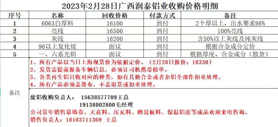 今日百矿润泰铝业 废铝采购报价已更新,有货的朋友欢迎联系我们!