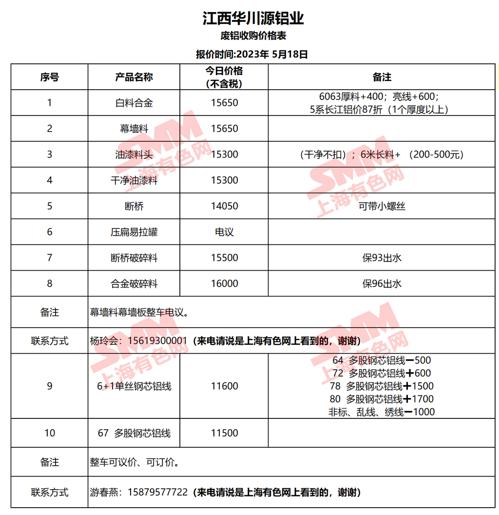今日江西华川源铝业 废铝收购报价已更新,有货的朋友欢迎联系我们!