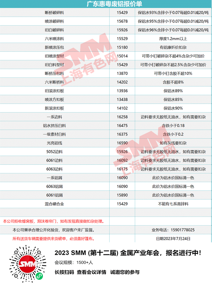 广东惠粤今日主要废铝料收购价目表,有废铝出货的朋友,请与我们联系。