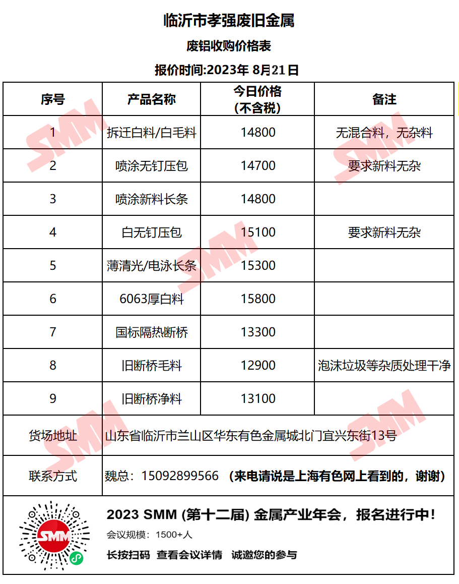 今日临沂市孝强废旧金属 废铝收购报价已更新,有货的朋友欢迎联系我们!