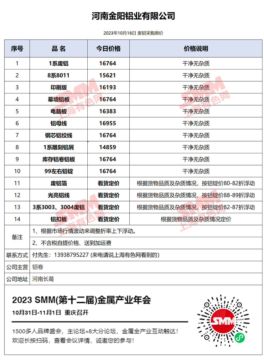 今日河南金阳铝业有限公司 废铝采购报价已更新,有货的朋友欢迎联系我们!