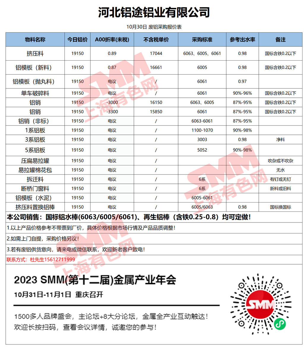 今日河北铝途铝业有限公司 废铝采购报价已更新,有货的朋友欢迎联系我们!