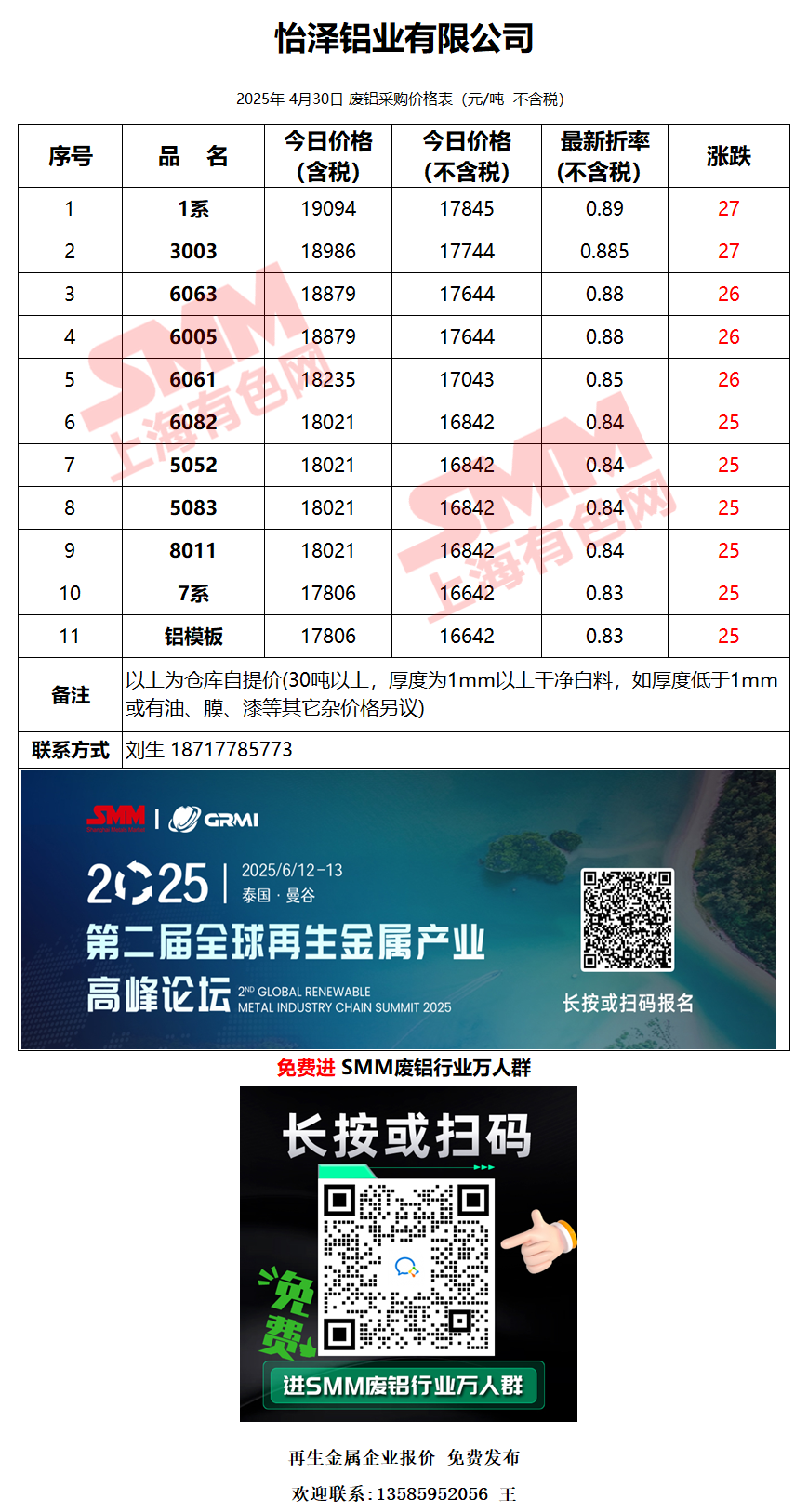 4月30日怡泽铝业 废铝采购报价