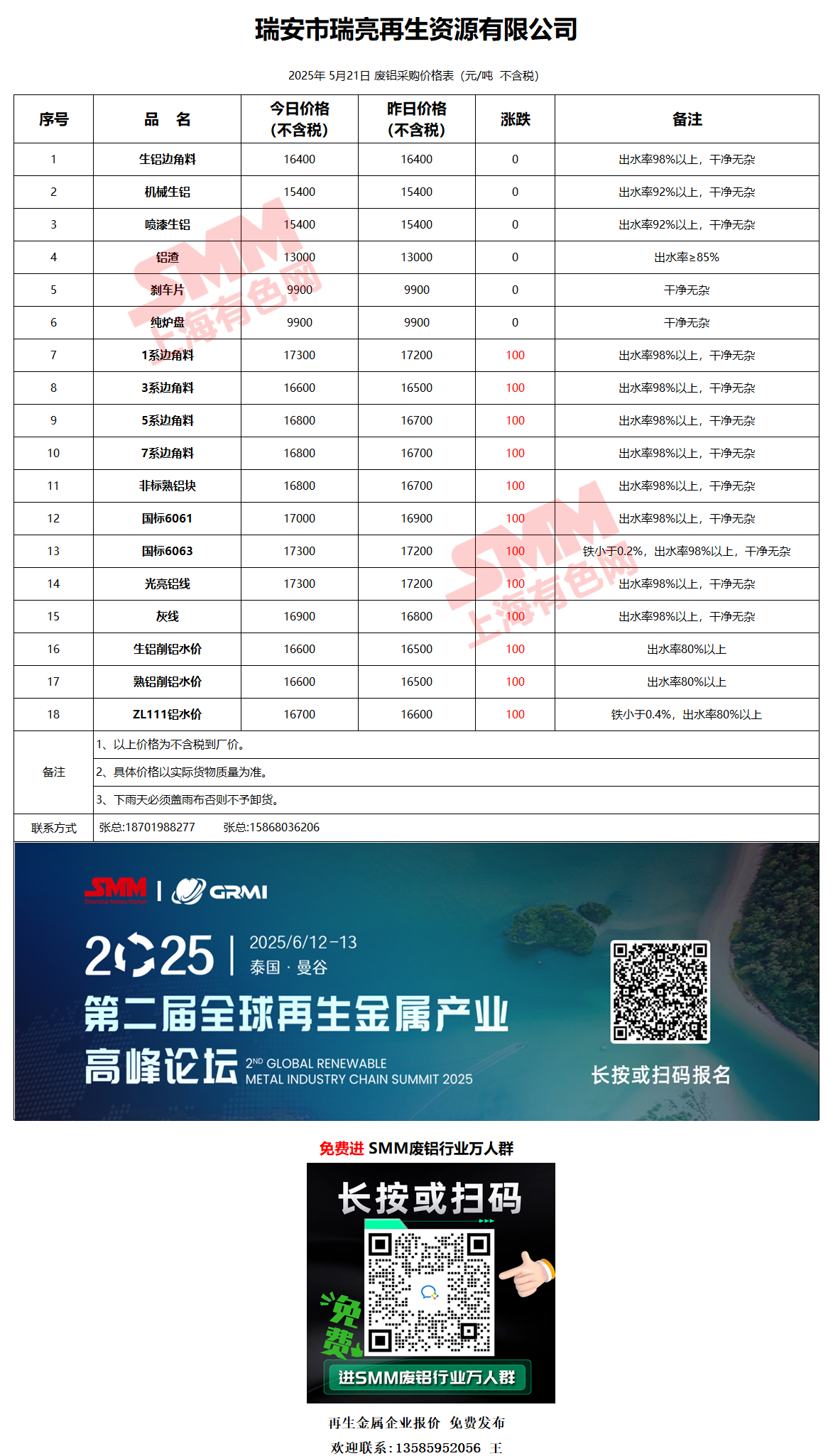 今日瑞亮再生 废铝采购报价已更新,有货的朋友欢迎联系我们!