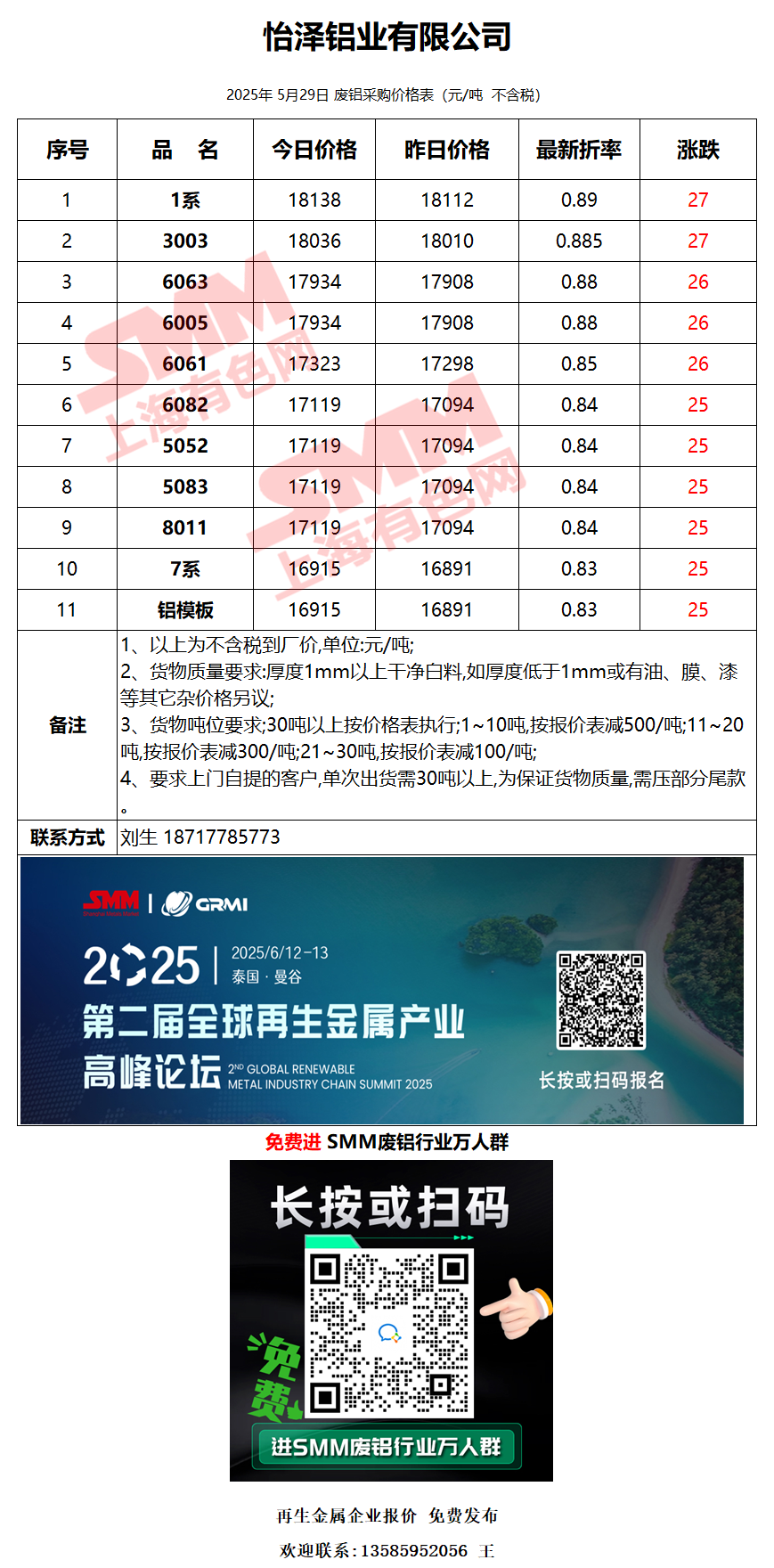 5月29日怡泽铝业 废铝采购报价