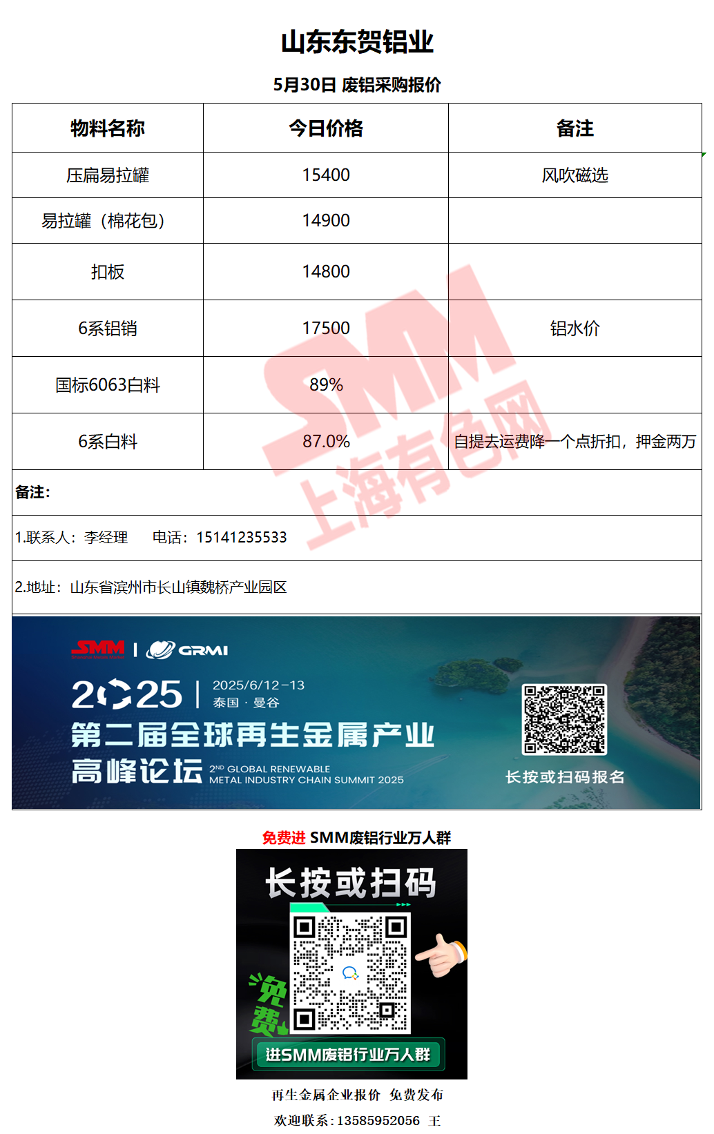 今日东贺铝业 废铝采购报价已更新,有货的朋友欢迎联系我们!