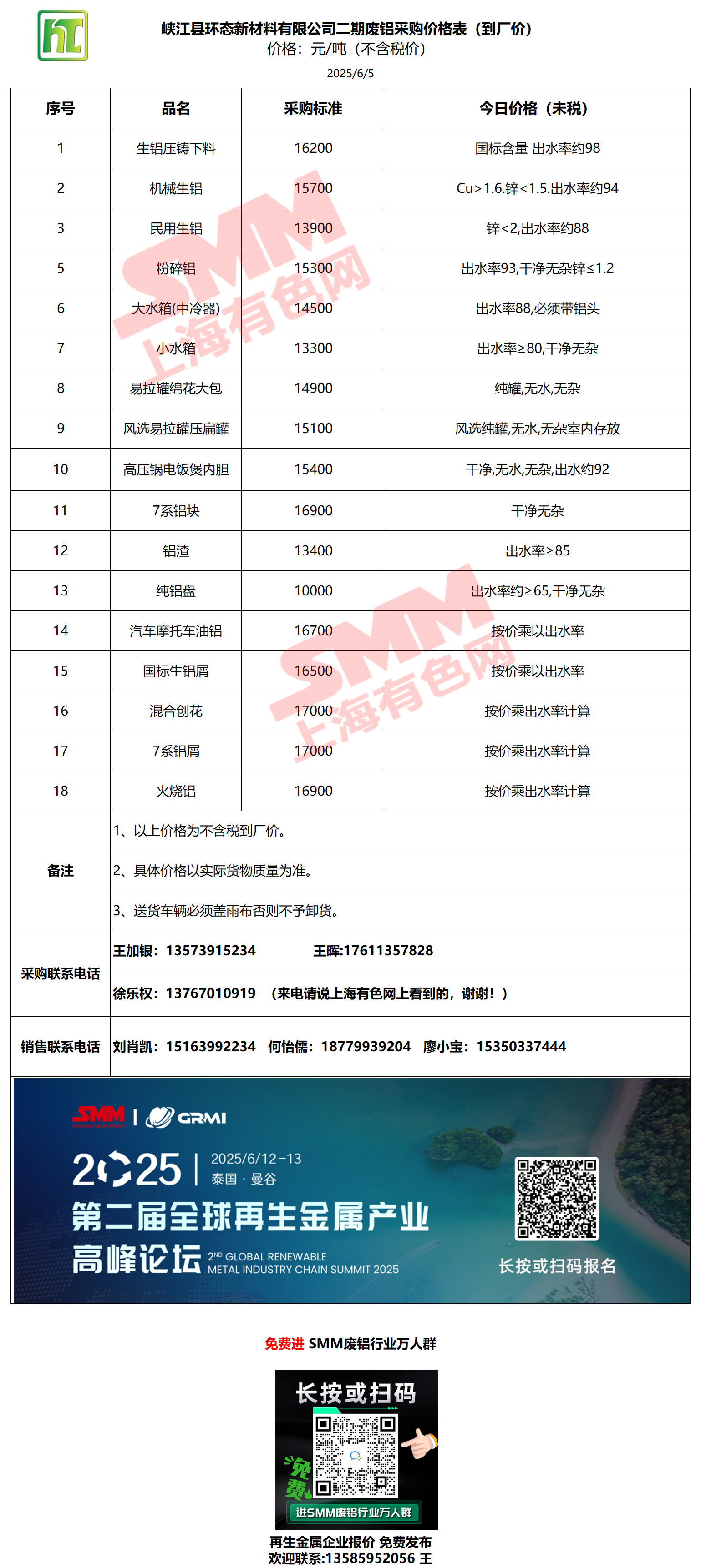 今日峡江环态 废铝采购报价已更新,有货的朋友欢迎联系我们!