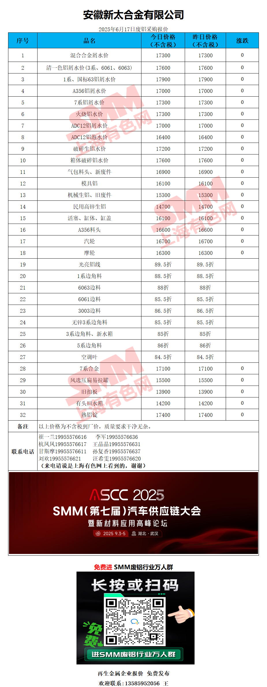 6月17日安徽新太 废铝采购报价