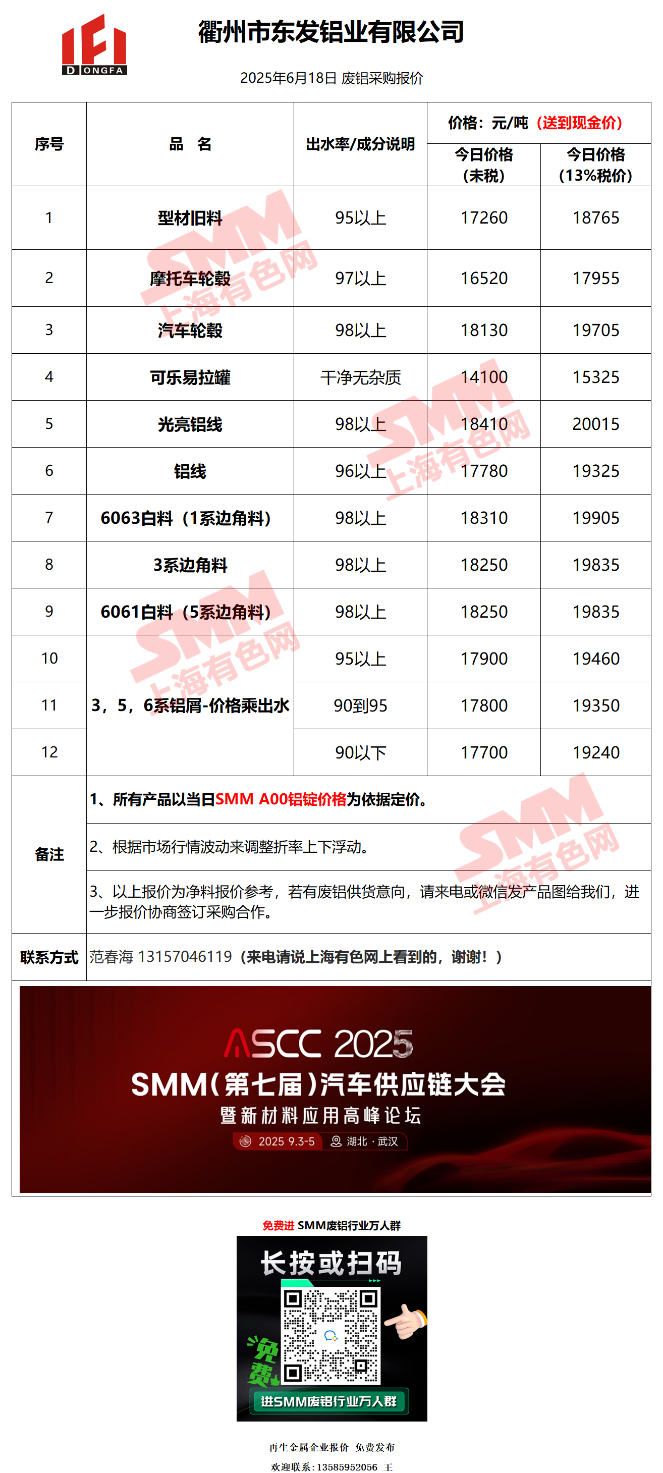 今日衢州东发 废铝采购报价已更新,有货的朋友欢迎联系我们!