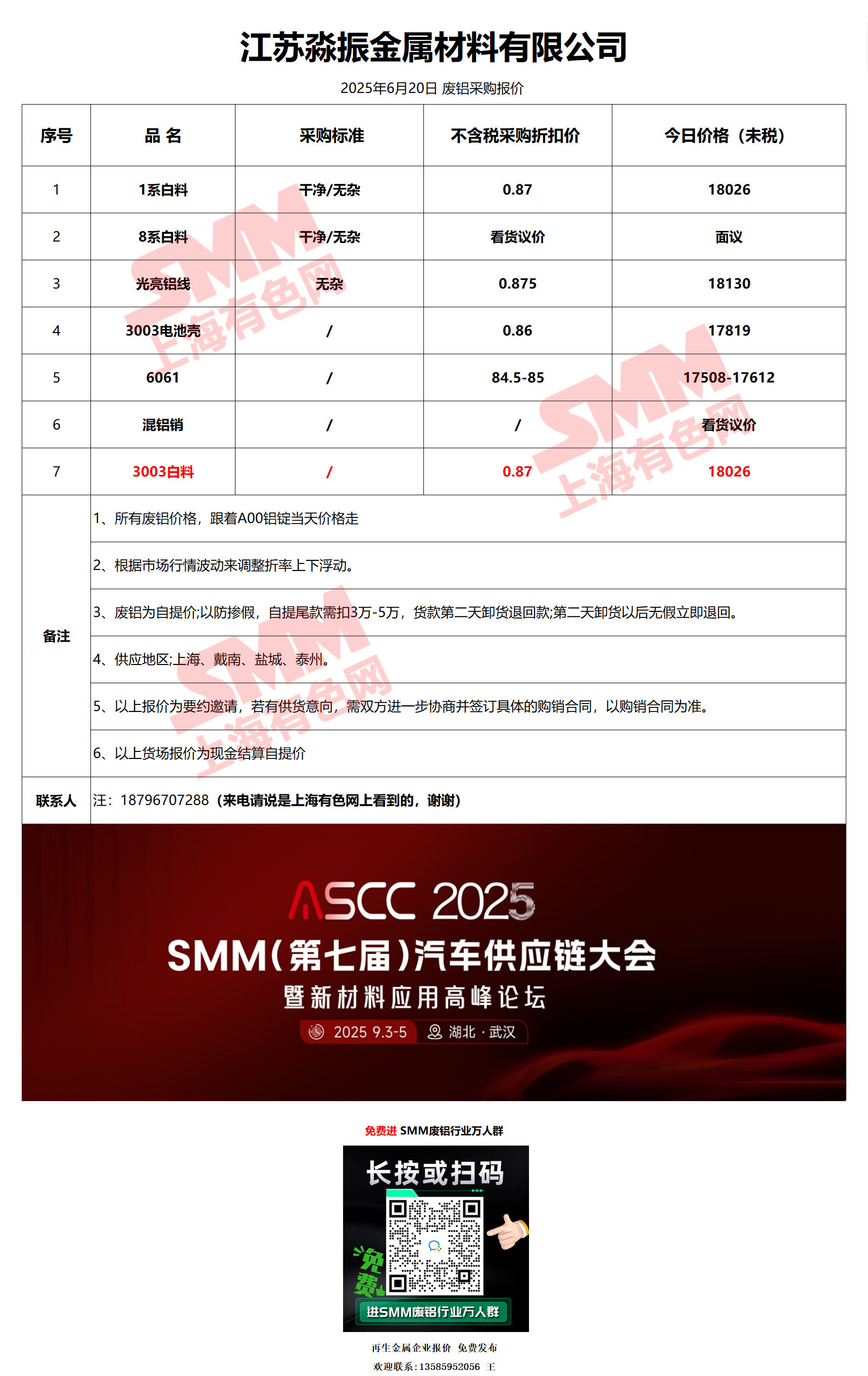今日江苏淼振 废铝采购报价已更新,有货的朋友欢迎联系我们!