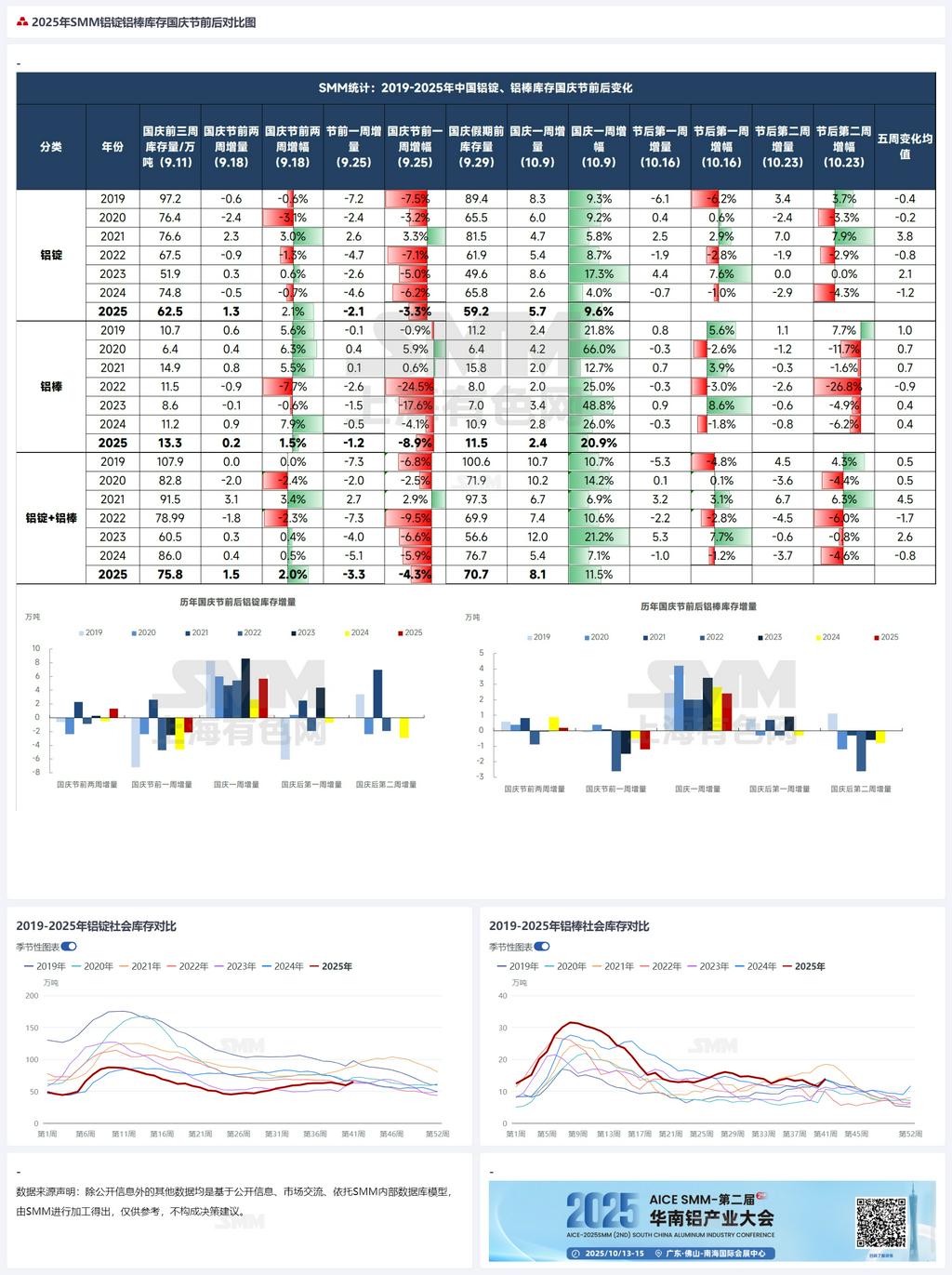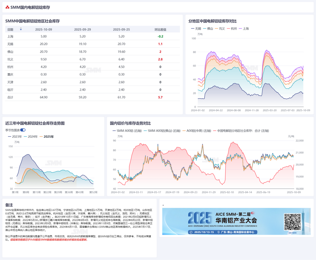 假期累库多不多?2025年国庆双节铝锭铝棒累库情况解读【SMM分析】