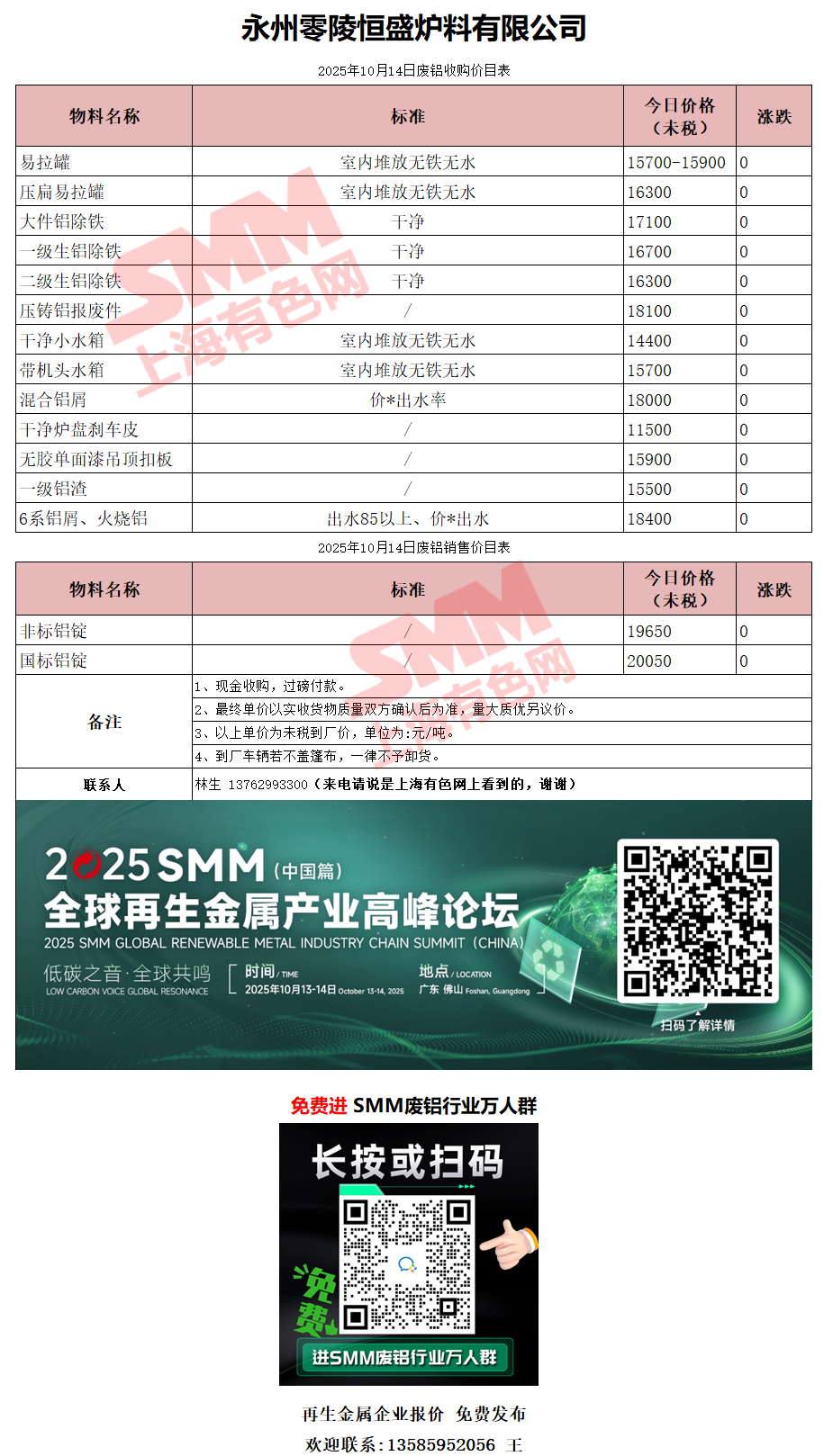 今日湖南恒盛 废铝采购报价已更新,有货的朋友欢迎联系我们!