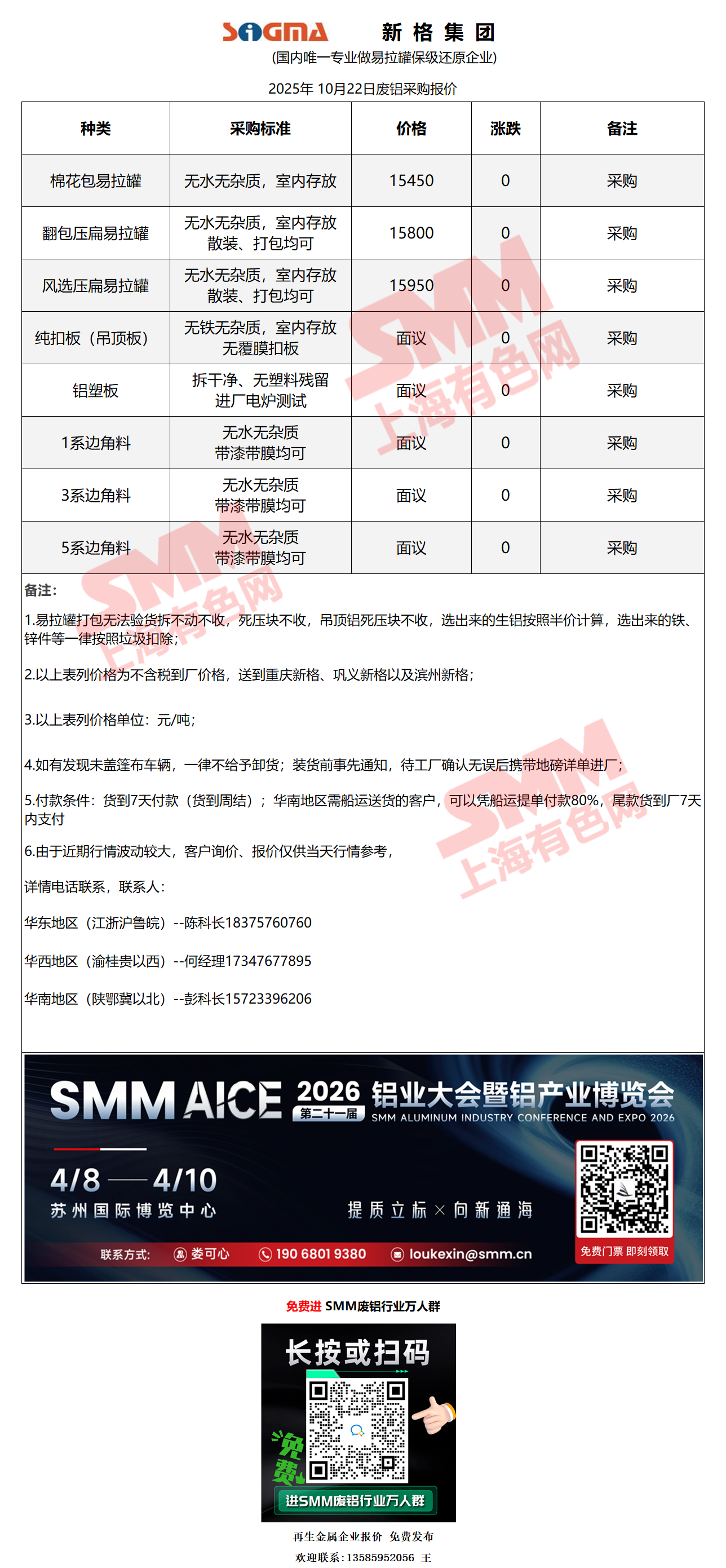 10月22日新格集团 废铝采购报价