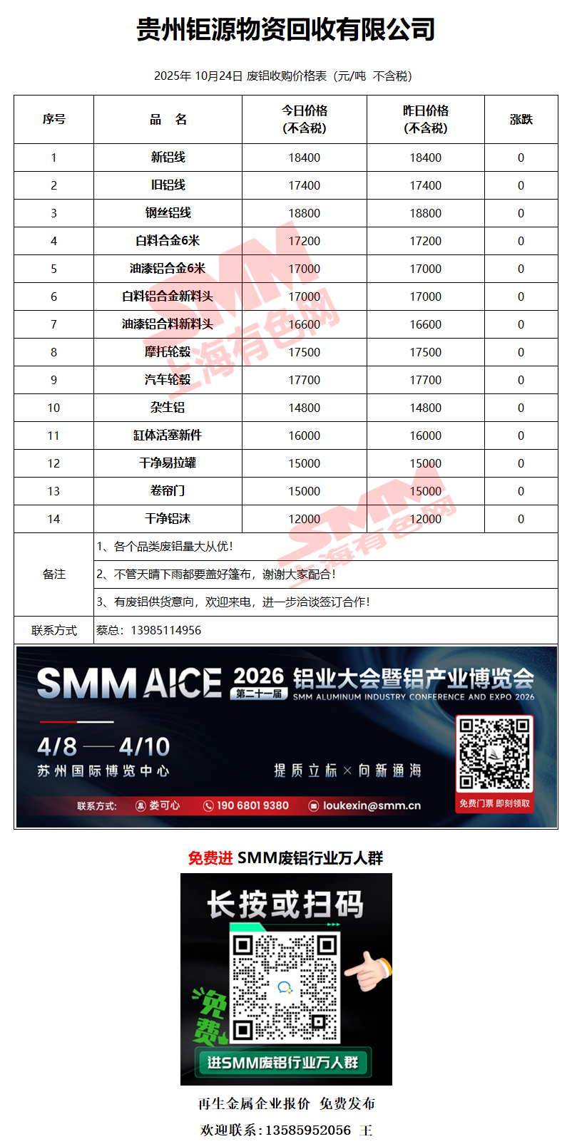 10月24日贵州钜源 废铝采购报价