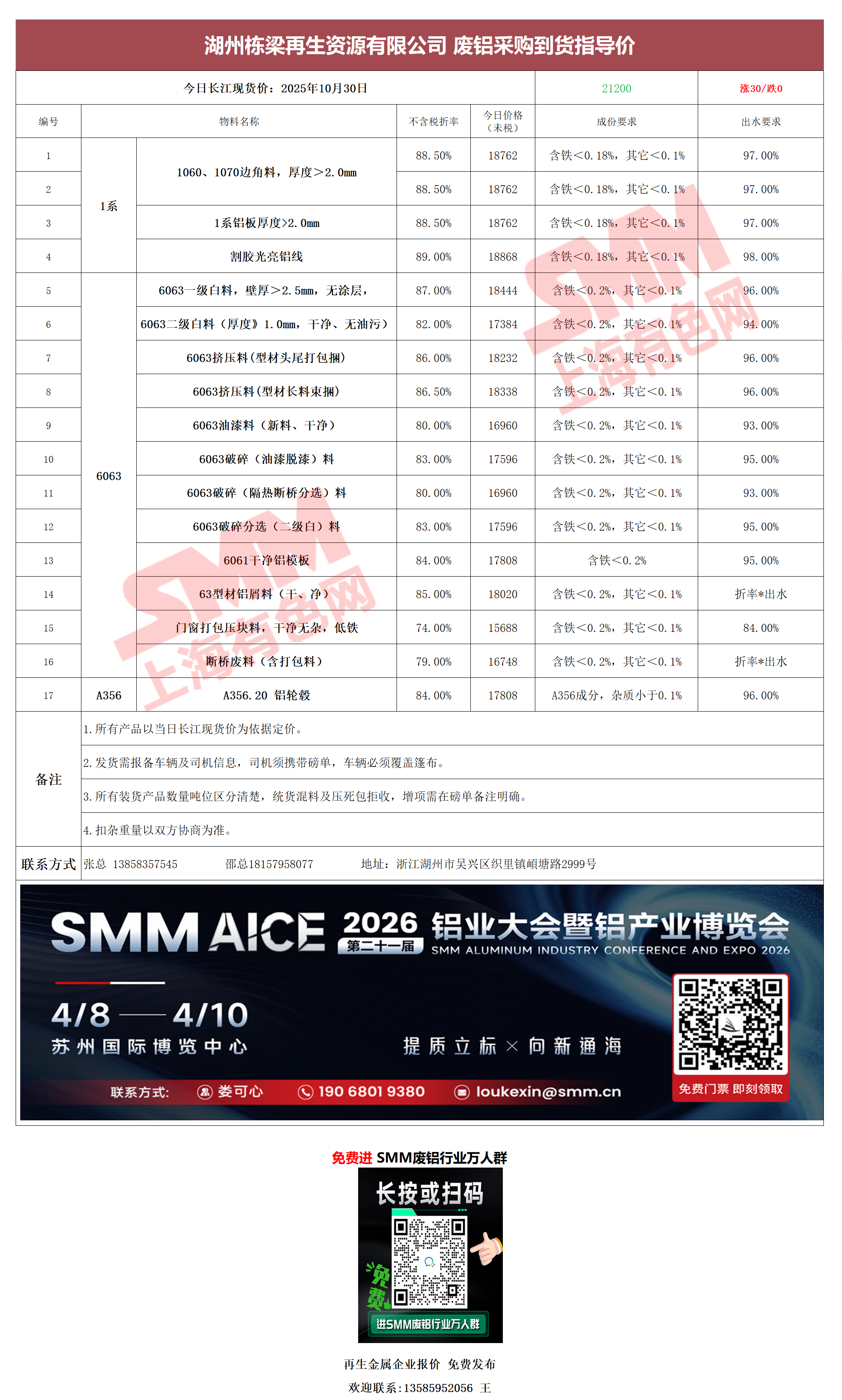 今日湖州栋梁再生 废铝采购报价已更新,有货的朋友欢迎联系我们!
