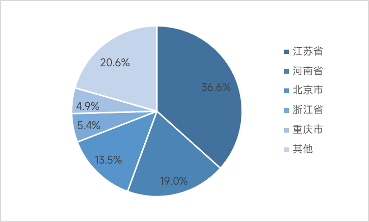 从出口注册地来看,江苏省、河南省和北京市占据出口量的前三名。江苏省出口量达到 8433.997 吨,占比 36.6%,展现出强劲的出口优势;河南省出口量为 4362.429 吨,占比 19.0%,稳居第二;北京市出口量为 3115.653 吨,占比 13.5%,位列第三。此外,浙江省、重庆市及其他地区也贡献了一定出口份额,共同构成我国铝线缆出口的区域格局。