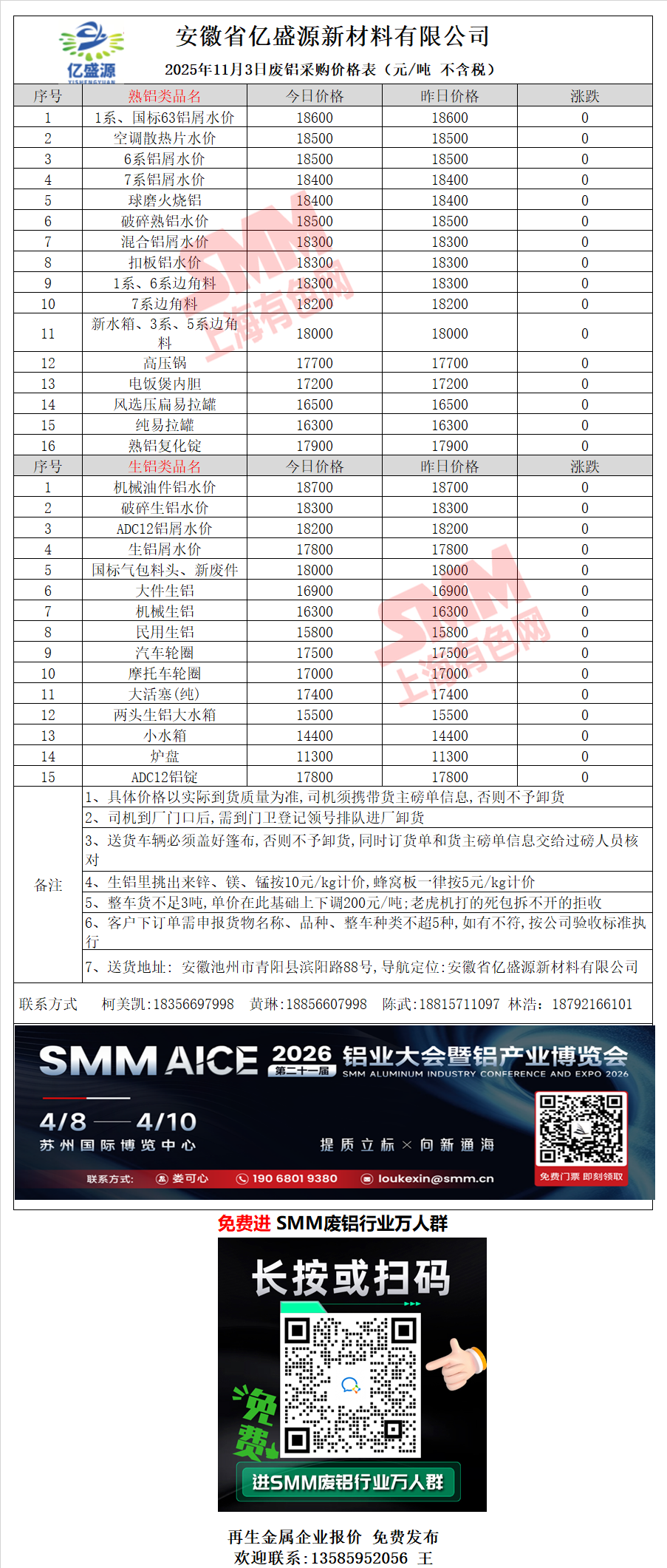 11月3日安徽亿盛源 废铝采购报价