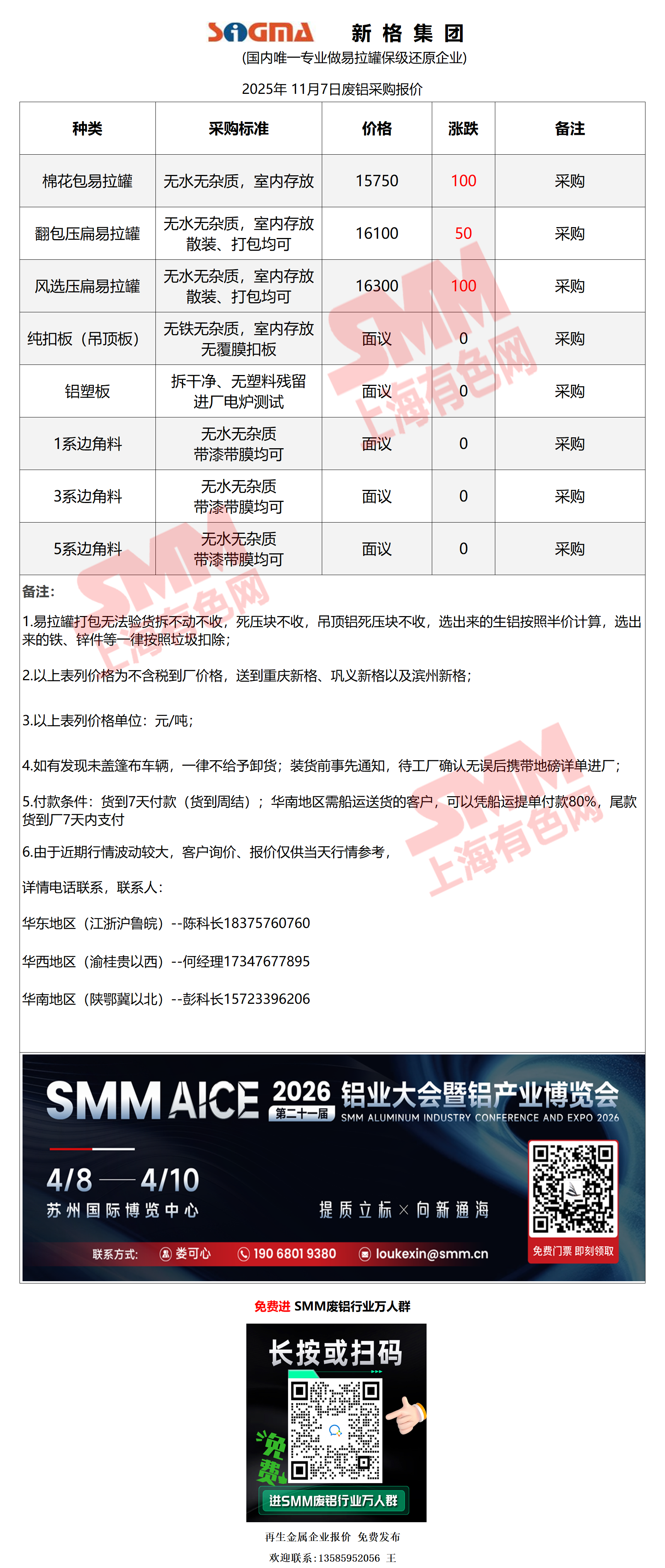 11月7日新格集团 废铝采购报价
