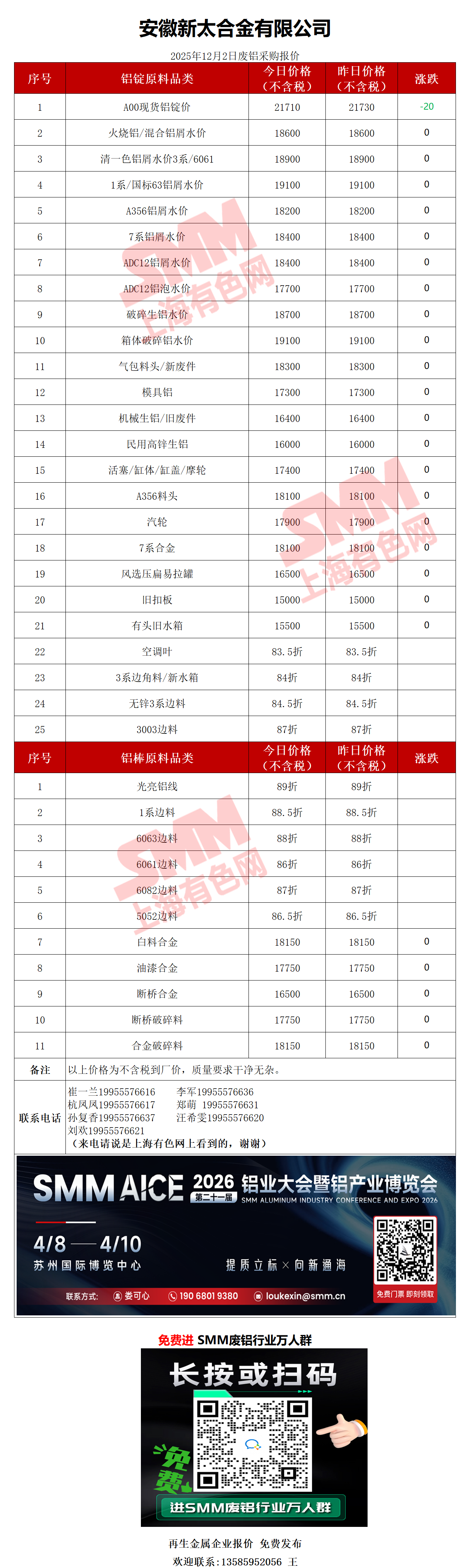12月2日安徽新太 废铝采购报价