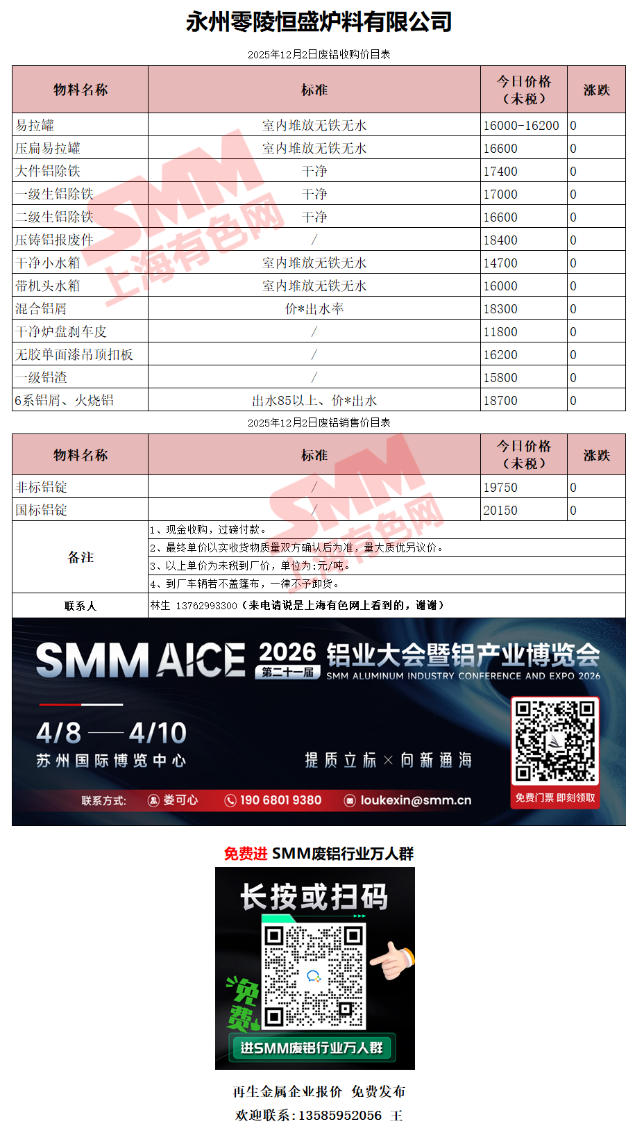今日湖南恒盛 废铝采购报价已更新,有货的朋友欢迎联系我们!