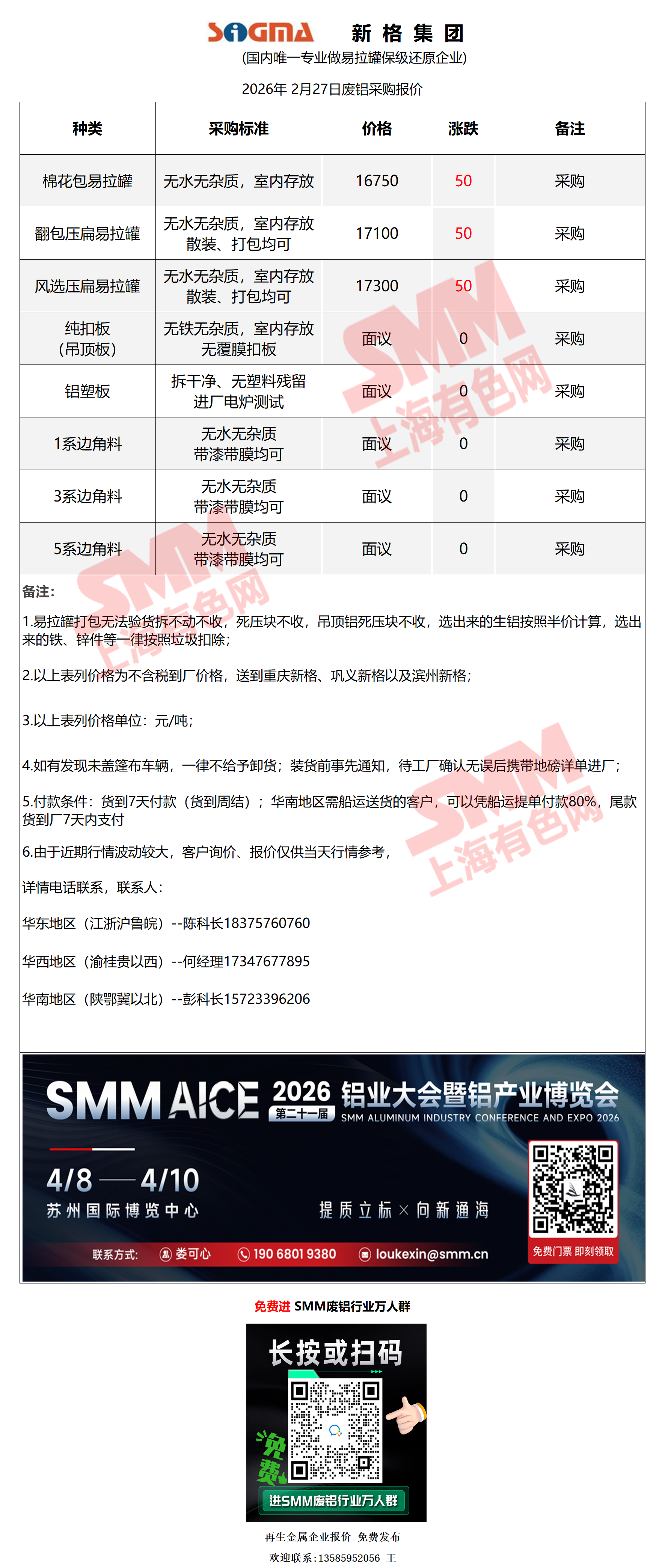 今日新格集团 废铝采购报价已更新,有货的朋友欢迎联系我们!