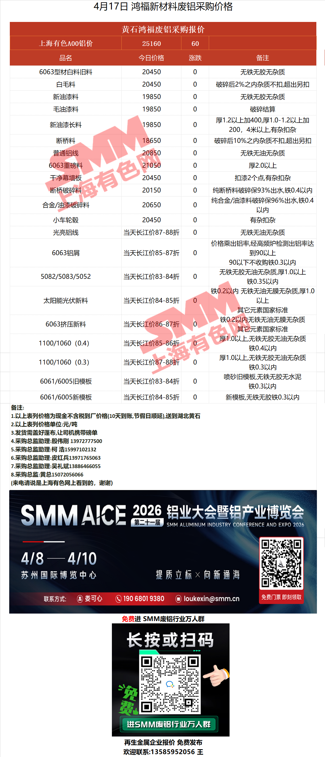 今日黄石鸿福 废铝采购报价已更新,有货的朋友欢迎联系我们!