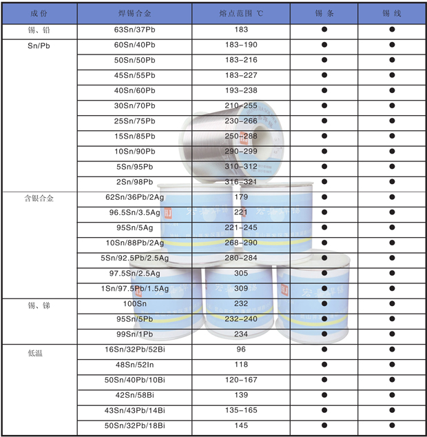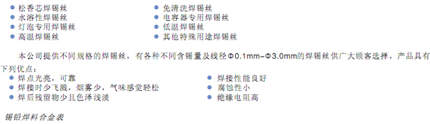 锡铅钎料是运用最广泛软钎料之一,首要以锡铅两种元素为主,参加少数其他合金元素组成一系列锡铅合金钎料。熔点低,电阻率低,耐蚀性好,对铜、铜合金、钢、不锈钢有杰出的潮湿性,含锡量超越50%的锡铅钎料首要用于电气、电子工业、餐具制品等,含锡量低于40%的首要用于板金、灯泡、热交换器、轿车水箱、铅管等场合。