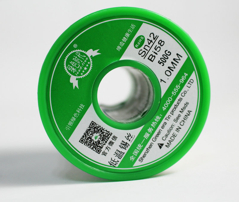 绿色年代牌无铅低温锡丝是无铅实芯锡线,合金成份为锡42%铋58%。这是一种契合RoHS合和完成国际性的要求。