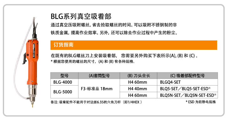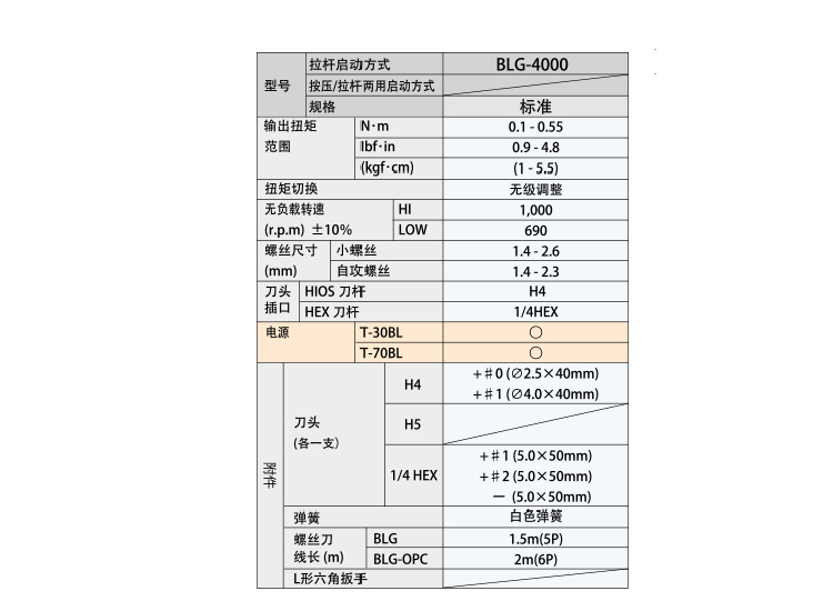 本公司直销日本HIOS好握速无碳刷电动螺丝刀BLG-4000 高转速进口电动螺丝刀 进口扭矩螺丝刀;适用规模:螺丝紧固,类型:BLG-4000,额外转速:1000,最大扭矩:0.55n.m,旋紧力矩:0.1-0.55,分量:0.55,额外功率:0,适用螺钉规模:1.4-2.6,总长度:0,品牌:HIOS好握速,旋向:双向,加工定制:否,电源电压:220V,类型:起子机,电源类型:交流电源,规格:[BLG-4000][BLG-5000]