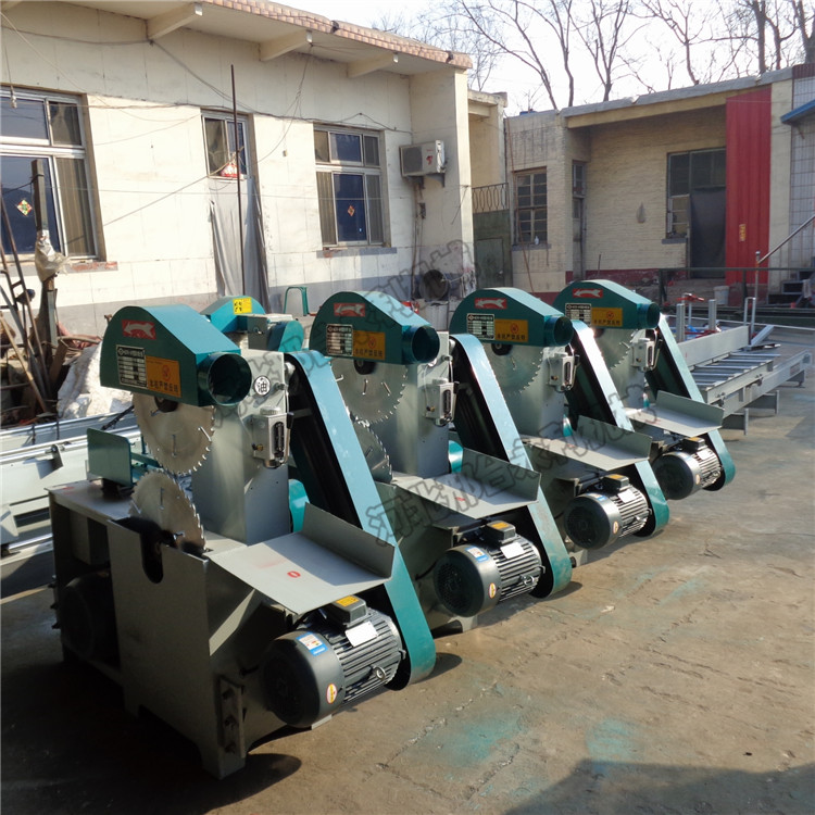 1.圆木推台锯是一种专门用于圆木的开破和分片的高性能机械,在包含了带锯性质的一起还具有了带锯机器4倍以上的成效。