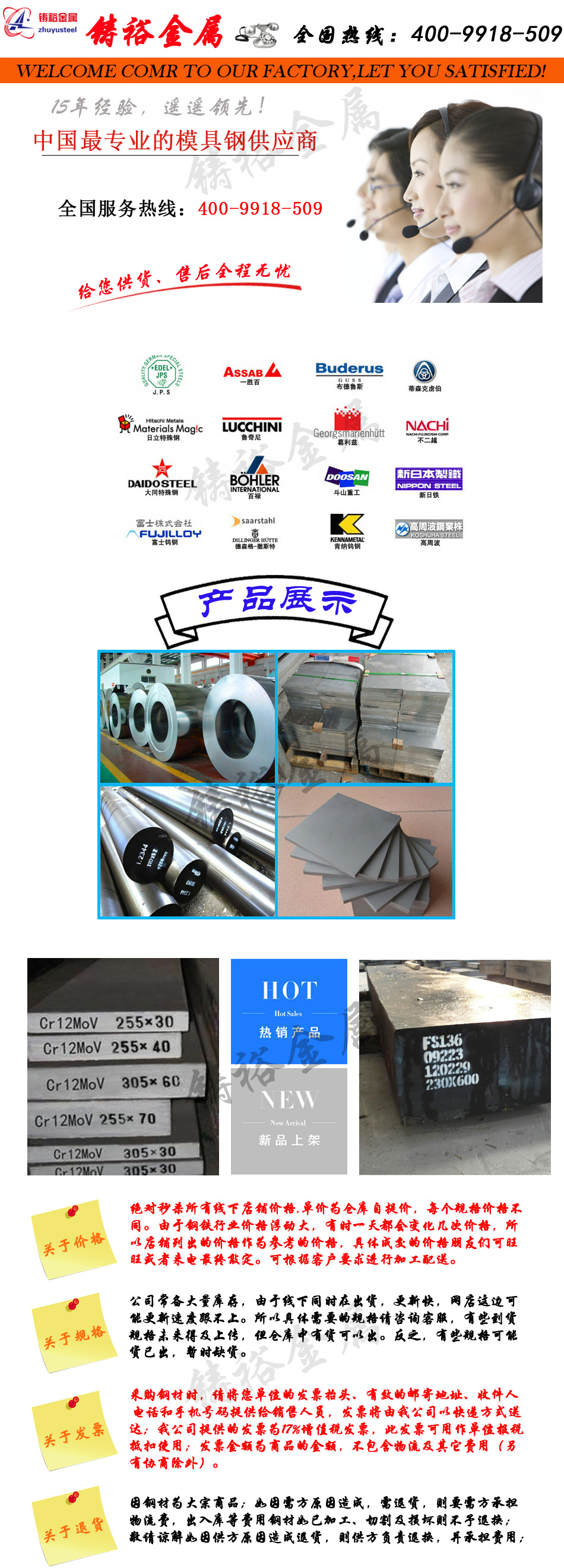 冶炼设备具有电弧炉,二次精粹,RH真空脱气设备和电渣重熔、真空电弧—自耗电极重熔等装量,铸造方面有1500T,3000T压机,并具有专用热挤压技能。热处理方面具有球化退火,批量处理炉和接连处理炉等。多年堆集技能精粹提纯,使钢材到达超低含量非金属夹杂物高纯净度钢,特别将氧、*和磷含量操控低水平,并操控参加合金元素量误差,使出产钢材力学性能安稳和热处理变形安稳,削减热龟裂,开裂等发作。