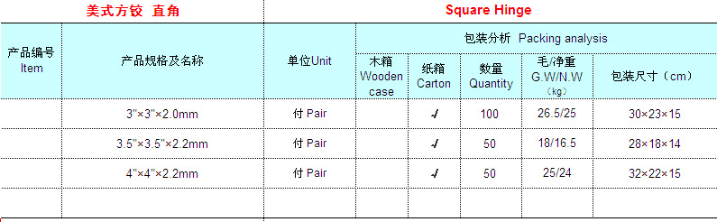 RH001 欧美中高档方铰3.53.52.2拉丝镍门