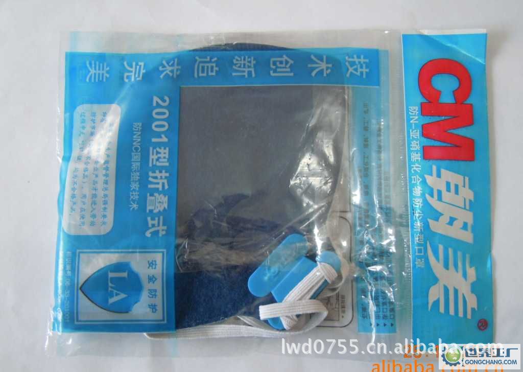 2001折叠式,表层为160G防尘棉,中间为60G N95过滤材料,内层为70G PP去毛无纺布,此款口罩依据中国人脸型规划,十分贴合脸部,密封度好,佩带舒适防尘作用好。内腔大使呼吸顺利不湿闷。此款产品是国家经贸委安全科学技术研究中心指定独家生产防N-亚硝基化合物的新式产品,契合欧洲CE EN149:2001标准及国标GB2626-2006 KN95标准。