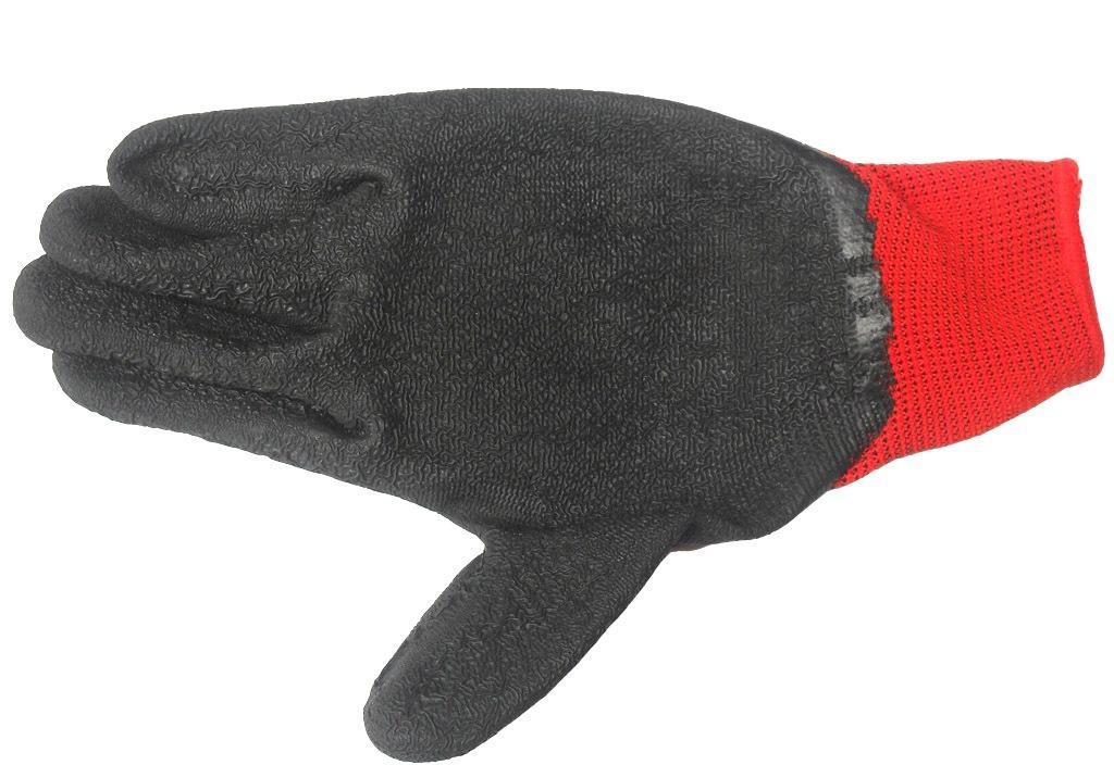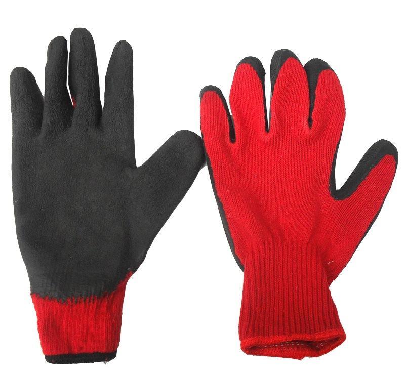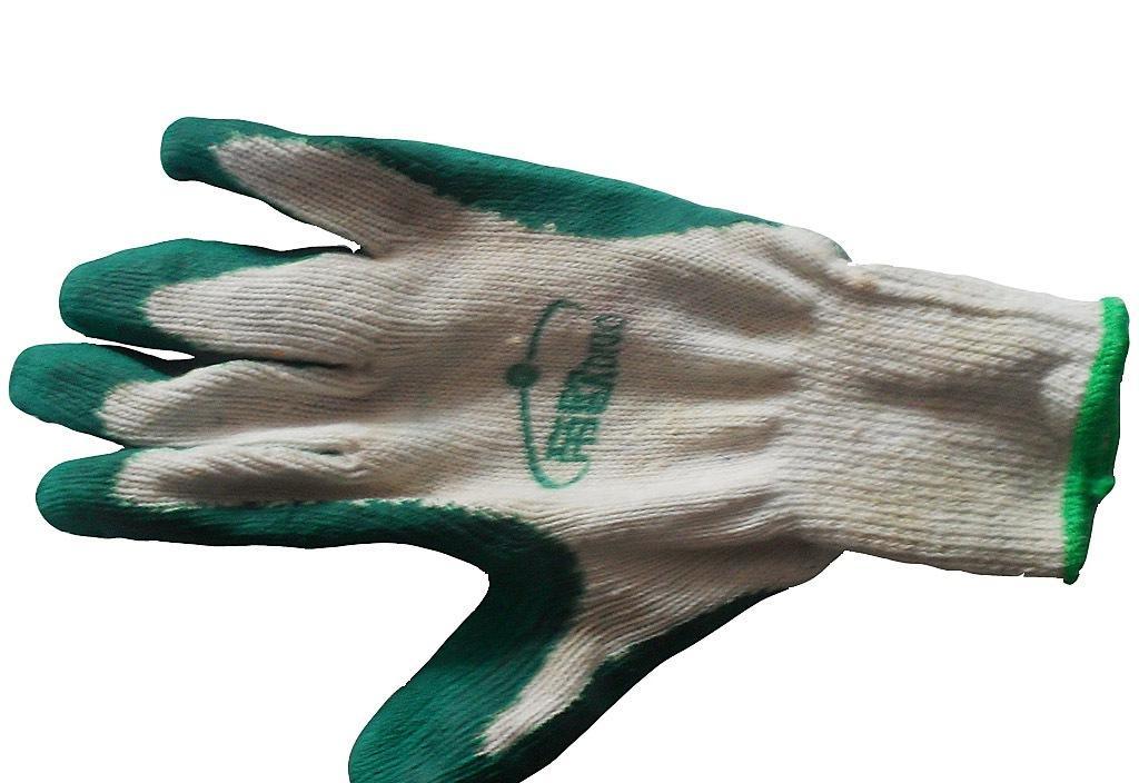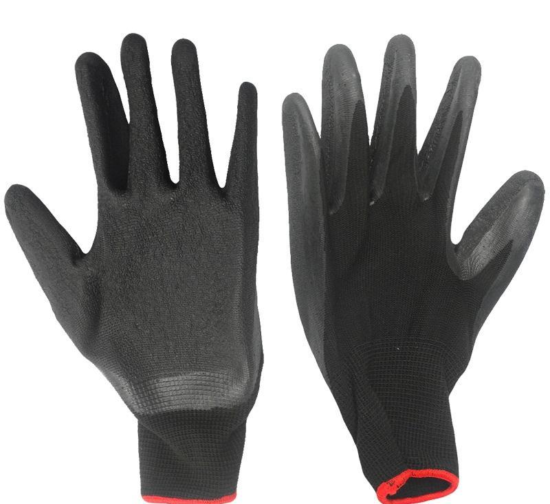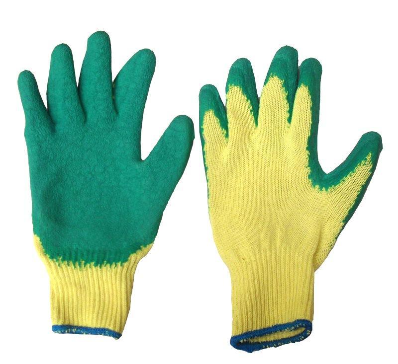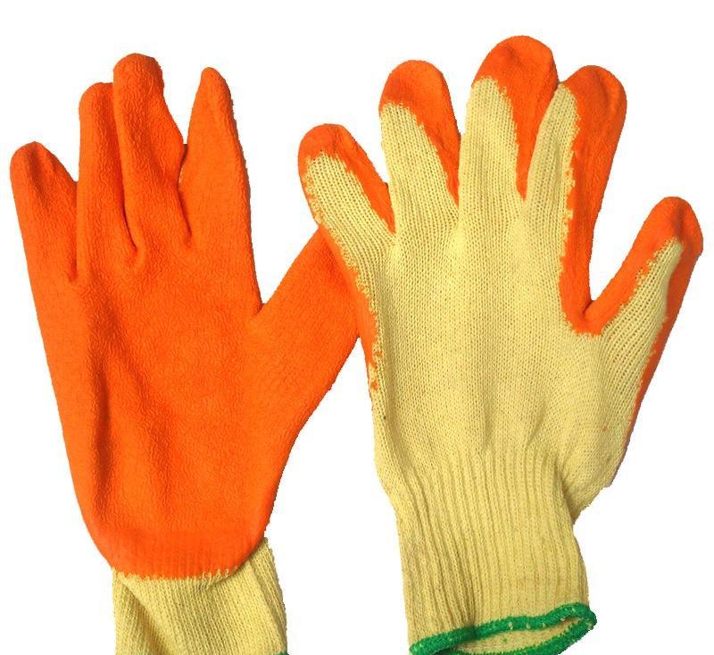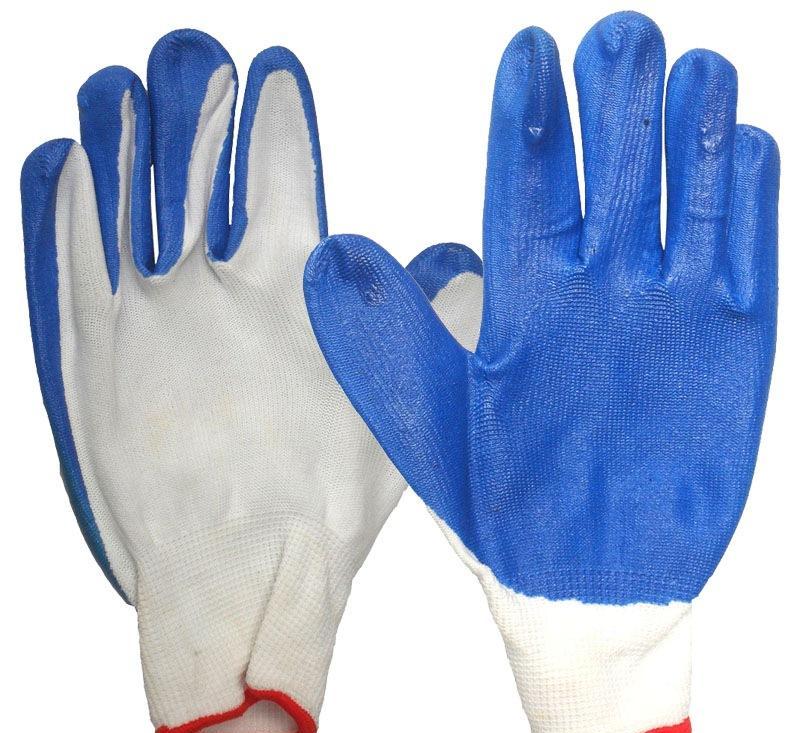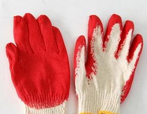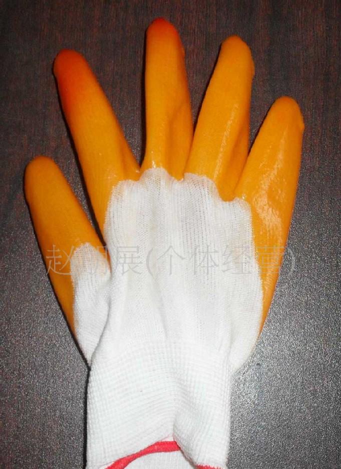 常用的浸胶类劳保手套(防护手套),由手套胚和浸胶层两部分构成。手套胚分尼龙、涤纶和棉线。这些都是针织的。尼龙的根本都是13针的,涤纶和棉线的大都是10针的,也有7针或8针的。