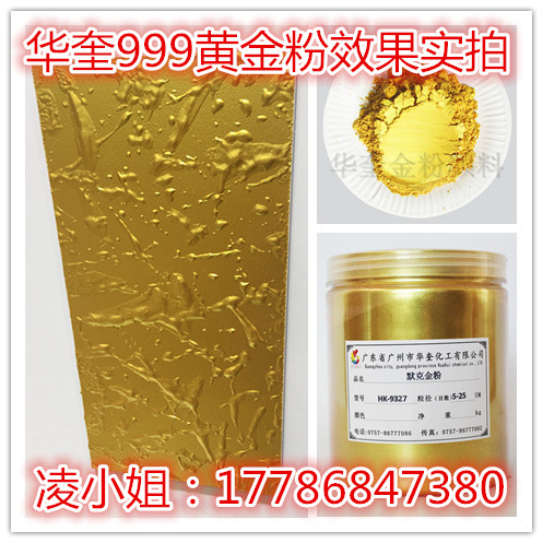 华奎999黄金粉无毒、无味、环保、耐光照、耐酸碱、不变色、不搬迁、不导电等特性,可使制品色彩金黄、艳丽、光泽亮堂,稳定性好,出现闪耀的黄金作用。本领极高温度。广泛适用于各类工艺品、装饰品、佛像、寺庙、雕琢、铁艺、陶瓷、印刷、涂料、塑料、油墨、皮革等职业,对佛像、寺庙用金粉作用赋予高雅尊贵的黄金色泽,可进步其产品附加值及竞争力。
