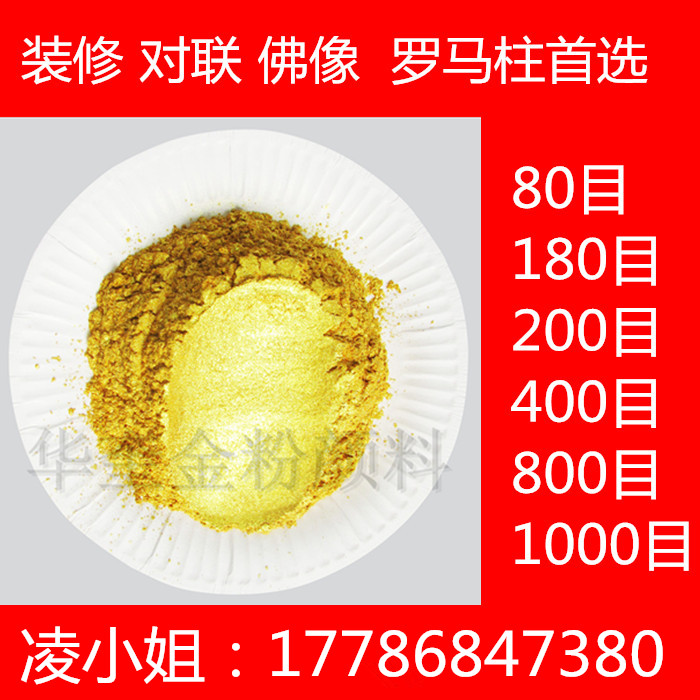 华奎999黄金粉无毒、无味、环保、耐光照、耐酸碱、不变色、不搬迁、不导电等特性,可使制品色彩金黄、艳丽、光泽亮堂,稳定性好,出现闪耀的黄金作用。本领极高温度。广泛适用于各类工艺品、装饰品、佛像、寺庙、雕琢、铁艺、陶瓷、印刷、涂料、塑料、油墨、皮革等职业,对佛像、寺庙用金粉作用赋予高雅尊贵的黄金色泽,可进步其产品附加值及竞争力。