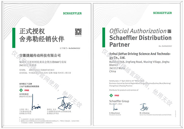 安徽捷越传动科技有限公司是舍弗勒在安徽省的一级授权经销商,多年来致力于FAG/INA轴承的代理销售,服务于水泥行业客户,电厂以及钢厂客户,为重齿减速机配套供应相应部位FAG轴承,库存充足。公司长期与海螺水泥、台泥水泥、中联水泥等集团合作。