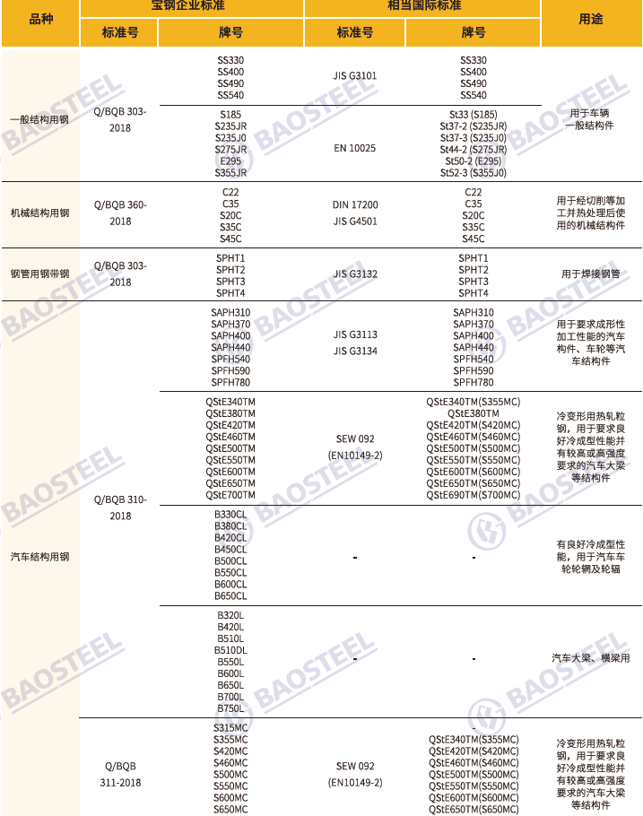 宝钢汽车用高强度钢采用了先进的冶炼技术,夹杂物含量低、钢质纯净,采用精确的控制轧制和控制冷却技术获得各钢种所需的组织结构满足使用要求。