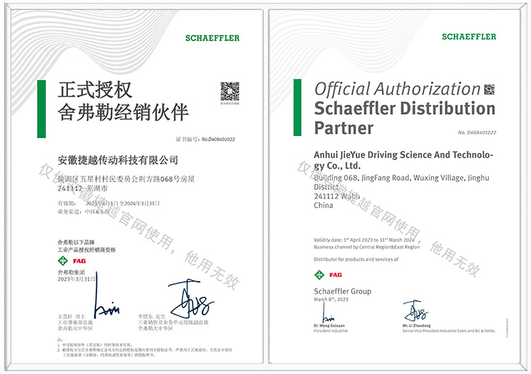 安徽捷越传动科技有限公司作为一级授权经销商,多年来一直专注FAG/INA轴承的销售与服务,主营立磨轴承、减速机轴承、辊压机轴承、回转窑轴承、破碎机轴承等FAG/INA轴承。我们的宗旨是为员工和客户提供超预期的满意和服务,在长期跟随企业快速发展时,不仅收获财富与成长,也收获温馨和快乐。