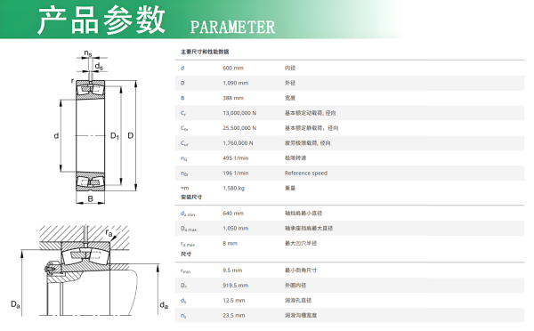 2、可承载双向轴向力和高径向力,为适应重载荷场合要求而设计的;