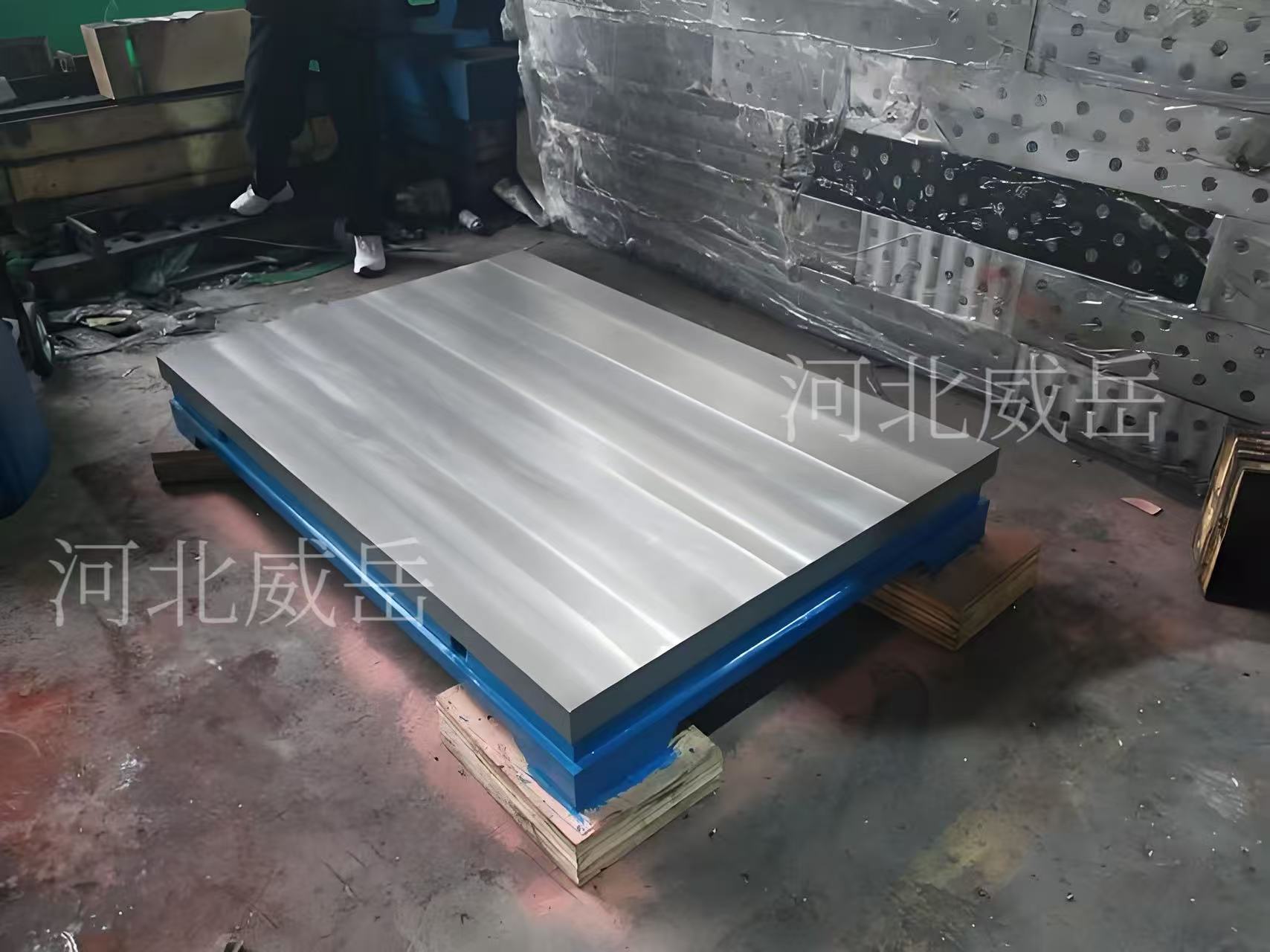 检查铸铁平台外观,确认工作面无裂纹、气孔、砂眼等缺陷,边缘无磕碰损伤。