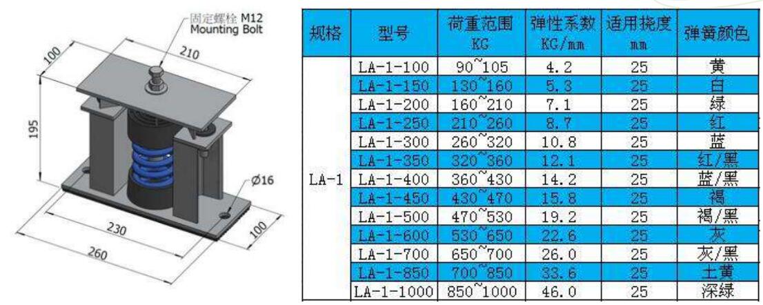 ★绷簧选用低天然频率值规划,并经ED及烤漆处理;本体原料为碳钢,表面选用达克锈处理,耐候性佳,防震效率高。