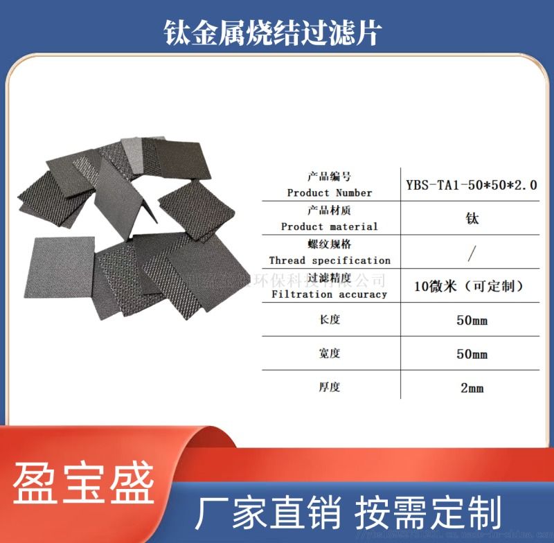 材质:TA1/TA2 工业纯钛 / 钛合金结构:多层丝网复合烧结尺寸:50mm×50mm×2.0mm过滤精度:10μm对应目数:1200~1500 目工作温度:-100℃~600℃工艺:高温真空烧结执行标准:GB/T 6887-2019、JB/T 14235-2021