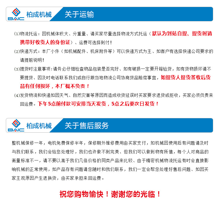 柏成机械公司所出产的产品,以其优异的功能,精巧的质量,完善的供应效劳以及诚笃守信的运营风格,赢得了国内外客户客户喜爱,在此,对长期以来支撑与信任“柏成”的新老客户朋友表明诚心和诚挚的感谢。柏成机械公司将永久本着“唯精仅有,与众不同."坚定信念与您一同发明光辉。