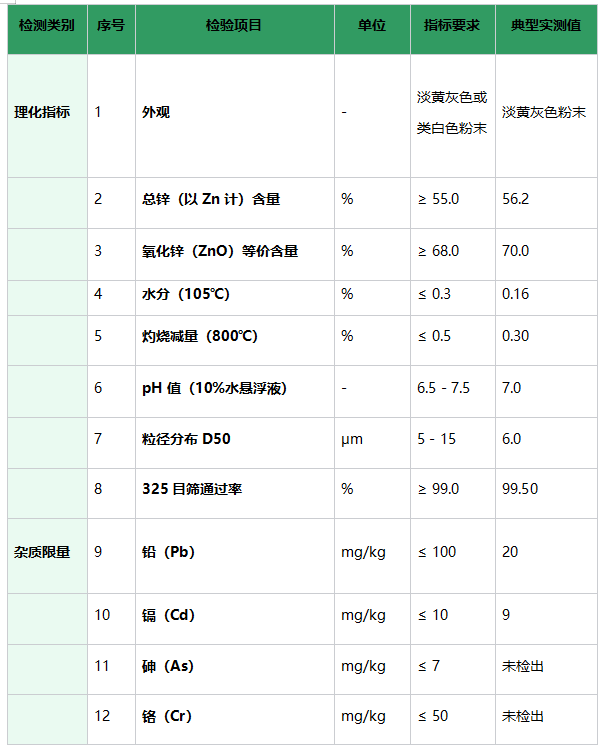 上述“氧化锌等价含量”为基于总锌含量的理论折算值,用于直观参考。