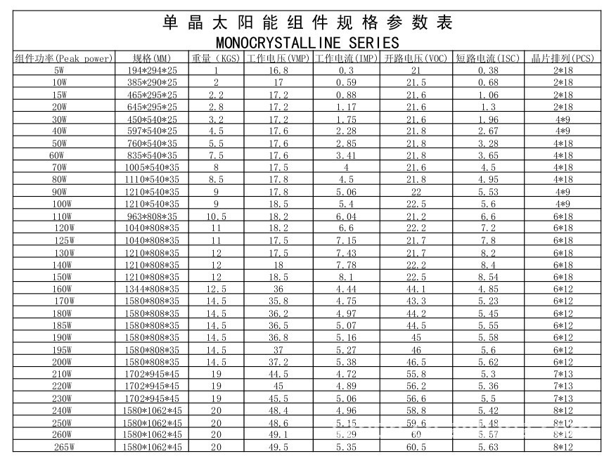 1. 组件材料由高透明度超白玻璃,EVA,高稳定性电池片,TPT背膜和铝合金边框组成。