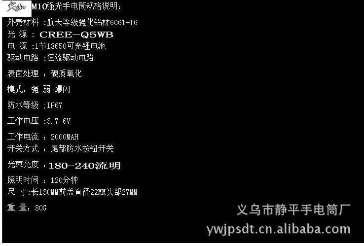 【功 能】:强光,弱光,暴闪5种
