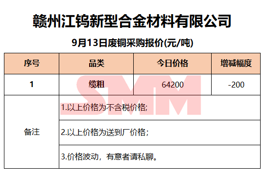 9月13日赣州江钨 废铜采购报价