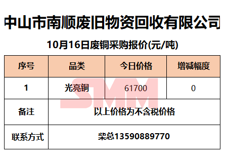 10月16日中山南顺 废铜采购报价