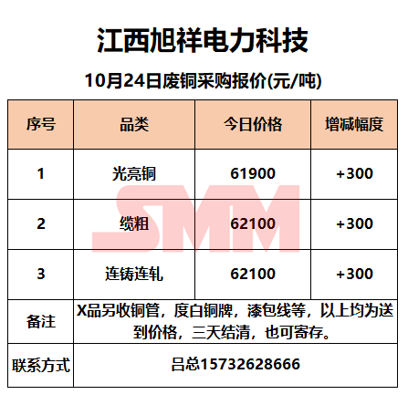10月24日江西旭祥 废铜采购报价